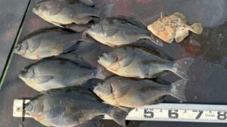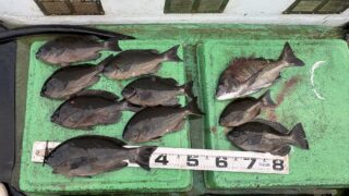 磯 グレ38cm頭に チヌ 新川氏 グレ38cm頭に カワハギ 佐々木氏 グレ36cm 植木氏
