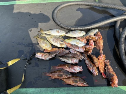 8月26日 シイラ シオ ハマチ 石鯛 イシガキ ルアー 2025.08.26 目次 ルアー磯 ルアー シイラ76cm シオ40cm 山ちゃん シイラ76cm日高氏 ハマチ 磯 石鯛40cm級1匹 イシガキ3匹 嶋田氏他1名 ガシラ アイゴ 田村氏
