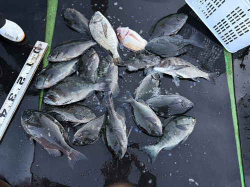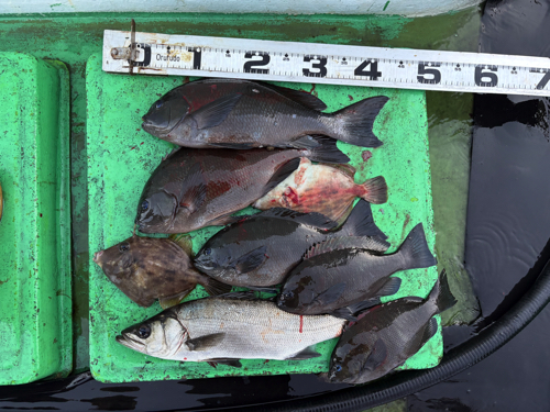 グレ42cm頭に 平スズキ カワハギ 坂本氏