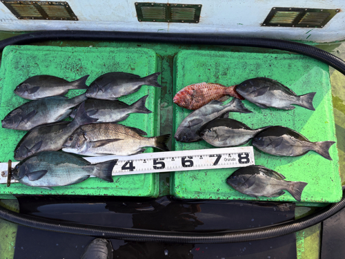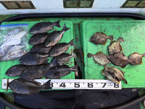 12月2日 グレ チヌ カワハギ スマ鰹 磯 2025.12.02 磯 グレ32cm頭に アオリイカ カワハギ 青柳氏 グレ36cm頭に チヌ イガミ 小林氏 グレ イガミ スマ鰹 アイゴ カワハギ 田村氏 グレ38cm頭に 柳本氏