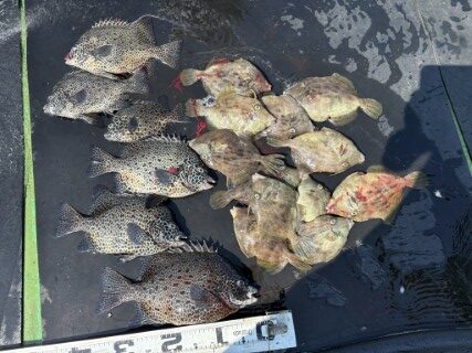 8月30日 シイラ ハンマーヘッドシャーク イシガキ カワハギ アイゴ ルアー 2025.08.30 目次 ルアー磯 ルアー ハンマーヘッドシャーク シイラ60cm級2匹 岸田氏 シイラ60cm級 田原氏 磯 イシガキ37cm頭に6匹カワハギ12匹田村氏