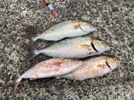 9月13日 【本日強風注意報ため早上がり】シオ ウスバハギ イサギ ツバス ルアー 2025.09.132025.09.14 目次 ルアー小浦一文字 ルアー シオ40cm級3匹 山口氏 山口氏 外向き赤灯よりです。😊 シオ 40-50センチ✖️4かずきくん カンパチばらし ひろきくん 小浦一文字 イサギ ツバス ウスバハギ