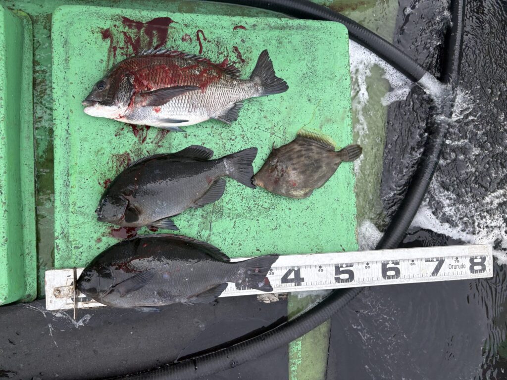 グレ37cm頭に チヌ43cm カワハギ 大仁田氏