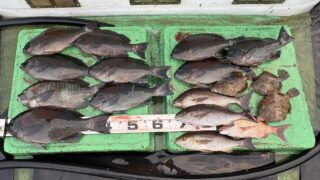 磯 1月19日 グレ チヌ イサギ 真鯛 磯グレ42cm頭に イサギ カワハギ 小川氏 グレ34cm頭に サンバソウ 片山氏 グレ33cm頭に 真鯛 カワハギ 小門氏 チヌ40cm頭に カンダイ 植木氏 2026.01.19 磯