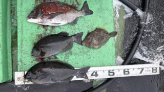 磯グレ37cm頭に チヌ43cm カワハギ 大仁田氏グレ30cm イサキ30cm サンバソウ 松永氏